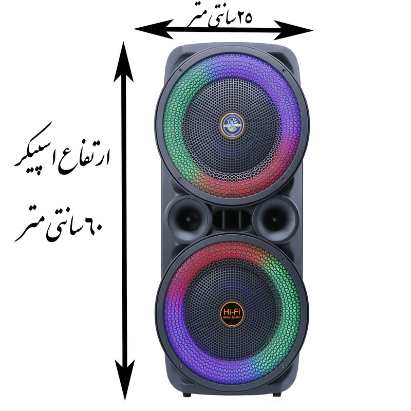 ریموت کنترل این اسپیکر امکاناتی همچون تغییر اکولایزر ، تغییرMode ، تغییر میزان صدا ، تغییر موزیک و... را به شما میدهد. شارژ این اسپیکر از طریق MicroUSB با شارژر های اندروید امکان پذیراست . ارتفاع این اسپیکر 60 سانتی متر و وزن آن 3.5 کیلوگرم می باشد.
