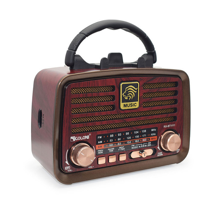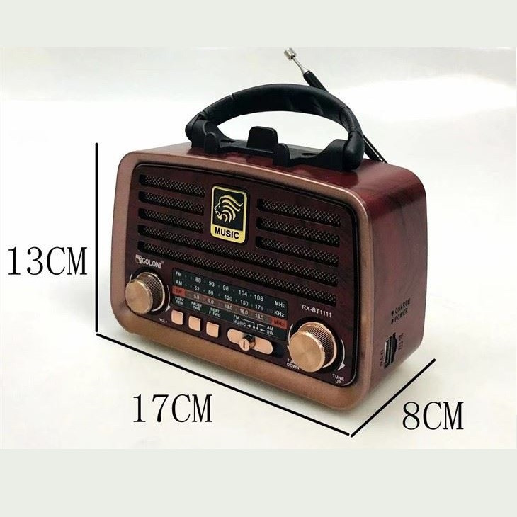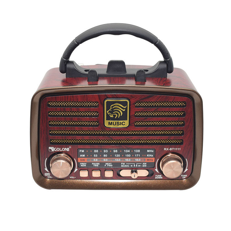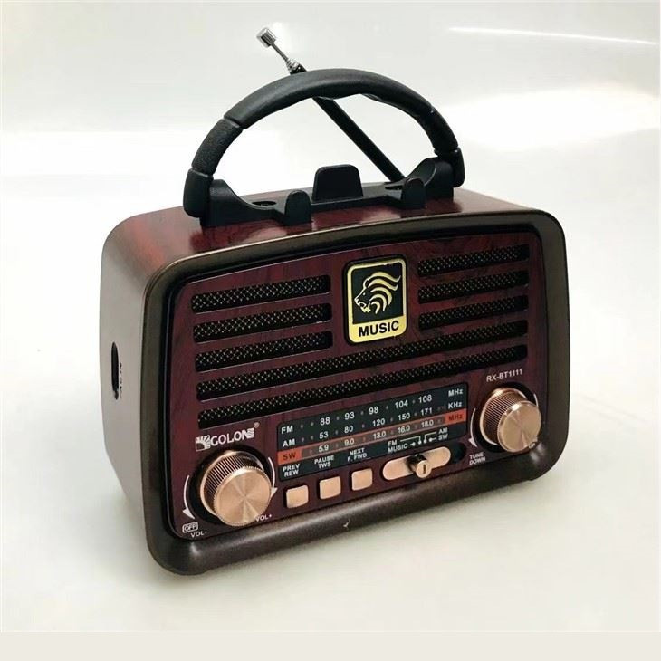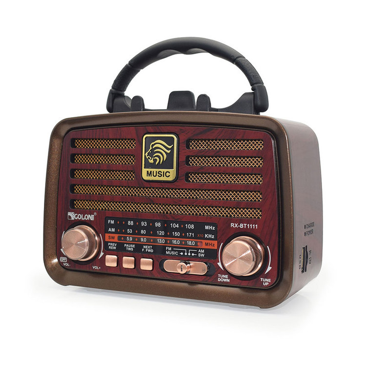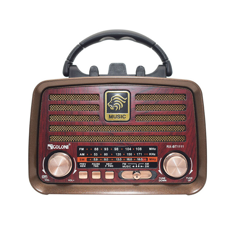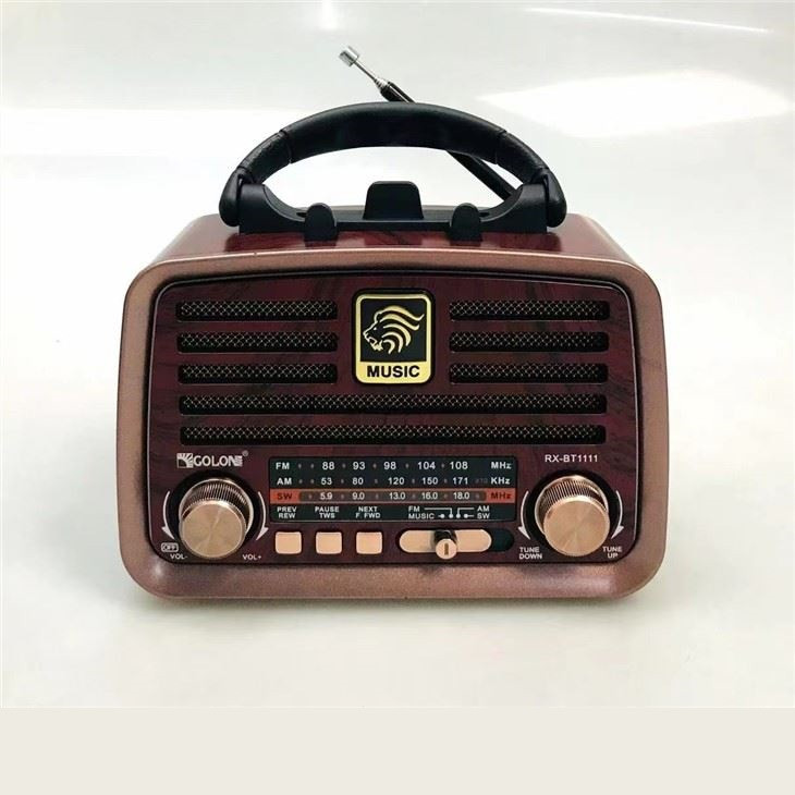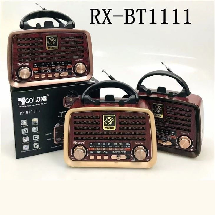 با وجود پیشرفت تکنولوژی باز هم رادیو طرفداران خاص خودش را دارد. رادیو RX-BT1111 رادیویی زیبا و جذاب با امکانات پیشرفته امروزی با طرح نوستالژیک خود به صورت رادیو های قدیمی، یادآور خاطرات بسیار شیرینی است. در این دستگاه نمایشگر تنظیم ایستگاه رادیویی مانند نسل رادیوهای قدیمی طراحی شده است . این رادیو اسپیکر گیرنده امواج رادیویی FM، AM و SW می باشد و قابلیت پشتیبانی از USB و TF CARD را داشته و همچنین دارای قابلیت اتصال بلوتوث می باشد. انرژی این رادیو به 3 صورت قابل تامین است:برق مستقیم شهری،باتری داخلی قابل شارژ و یا 2 عدد باتری قلمی بزرگ.این رادیو در همه جا میتواند همراه خوبی برای شما باشد. این رادیو با داشتن آنتن تلسکوپی بر روی خود به راحتی میتواند در هر مکانی به ایستگاه رادیویی دلخواه شما متصل و شما را با پخش رادیو لذت خاصی دهد.همچنین وجود دسته بر روی بدنه حمل این رادیو را راحت کرده است.