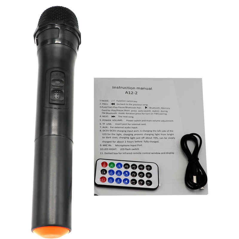 اسپیکر او ام اند اس مدل A-12-2 محصولی پر طرفدار از کمپانی بزرگ «او ام اند اس » (OM&S) می باشد. شاید برای شما هم اتفاق افتاده باشد که دوستان خود را به مهمانی دعوت کرده باشید و هنگام پخش موسیقی با اسپیکر های معمولی و یا از طریق اسپیکر های سینمای خانگی خود، صدای موسیقی در ازدحام جمعیت گم شده باشد. قطعاً اسپیکر A12-2 مناسب شما است اگر مهمانی زیاد می دهید و یا به مهمانی دوستانتان دعوت می شوید و یا اهل تفریح و گردش و گوش کردن موسیقی در طبیعت و محیط های باز که به برق دسترسی ندارید می باشید و از کیفیت صدای موسیقی که پخش می شود ناراضی هستید، اسپیکر A12-2 با بلندگوی 12 اینچی خود خیال شما را از پخش موسیقی با یک صدای بلند و با کیفیت راحت می کند. حتی شما می توانید با میکروفون بی سیمی که همراه اسپیکر قرار دارد چند دقیقه ای را در مهمانی خود سخنرانی کنید. علاوه برآن دارای درگاه میکروفن سیمی نیز می باشد . اسپیکر بلوتوثی دارای رقص نور نیز هست . این اسپیکر دارای دسته و چرخ نیز هست که حمل و نقل را آسان کرده است . اسپیکر A12-2 دارای ابعاد آن 36x32x54 سانتیمتر است و دارای وزن 3 کیلوگرم است. در قسمت بالایی این اسپیکر دارای بلوتوث و کلید هایی برای کنترل موسیقی و درگاه هایی برای اتصال کارت TF , فلش مموری و AUX قرار گرفته است. این اسپیکر دارای ریموت کنترل است پس نیازی نیست برای تغییر موسیقی و یا کم و زیاد کردن صدا از جای خود بلند شوید. اگر طرفدار برنامه های رادیو هستید با این وسیله به فرکانس موج FM دسترسی داشته باشید . این اسپیکر دارای قابلیت تغییر اکولایزر از طریق ریموت کنترل نیز می باشد .