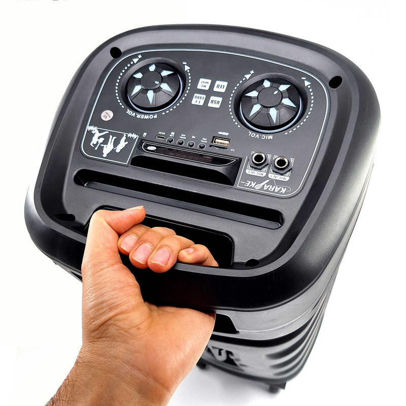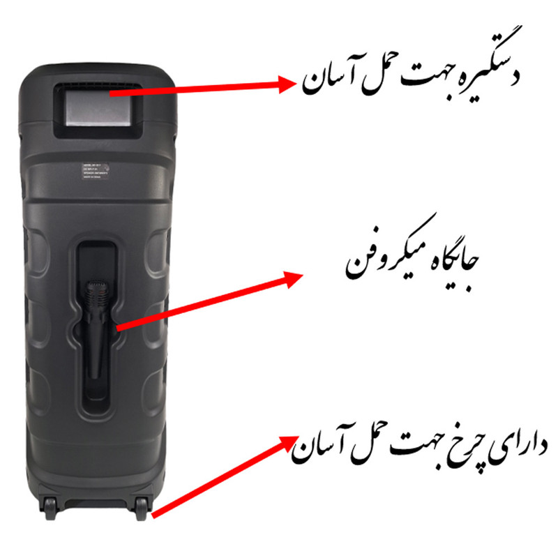 این اسپیکر دارای دستگیره و چرخ جهت حمل آسان می باشد .