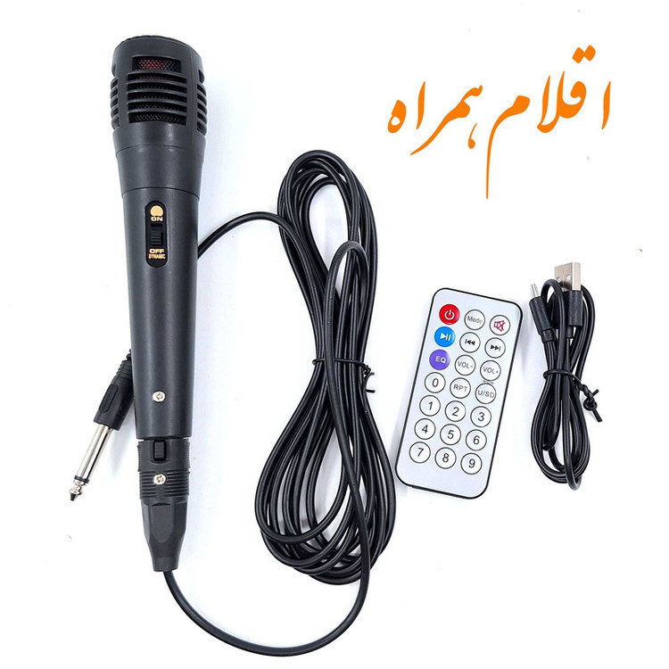 همراه این اسپیکر یک عدد ریموت کنترل، کابل شارژ MicroUSB و یک عدد میکروفن سیمی می باشد .