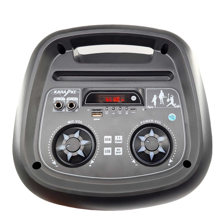 این اسپیکر دارای دو ورودی میکروفن و ولوم میکروفن به منظور تغییر میزان صدای میکروفن است.